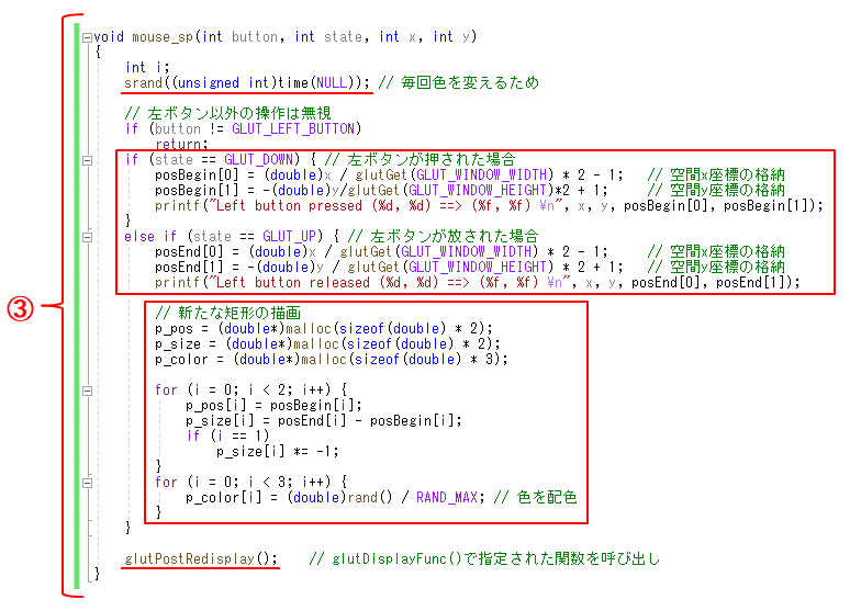 - ③ mouse_sp()関数を以下のように修正する.