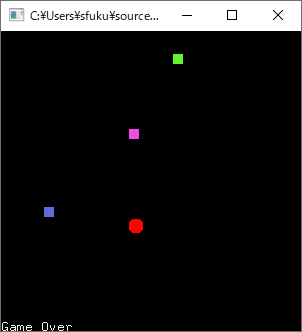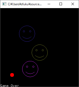演習12.1や課題12.1では、敵の図形が点(drawDot)だった。敵の図形を顔(drawFace)に変更せよ。敵の個数は3つ以外でもよい。
