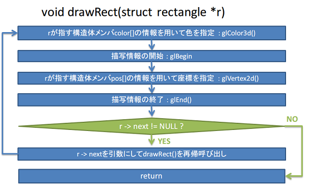 6.関数drawRectを修正し、再帰処理を使ってリストの矩形を順番に描画する