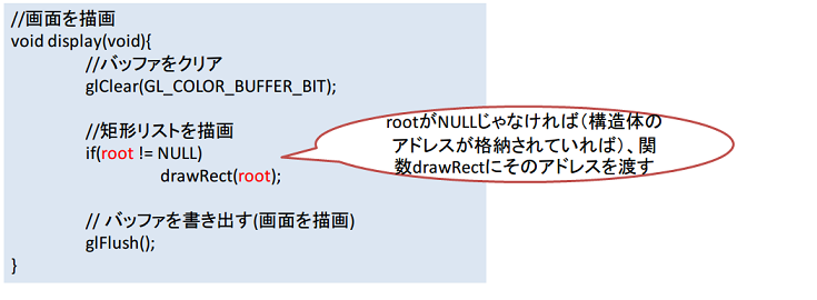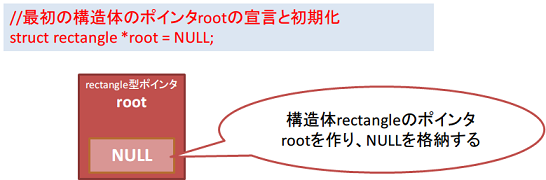 2. 最初の矩形情報(rectangle構造体)のアドレスを格納するポインタrootの宣言と初期化を行う.