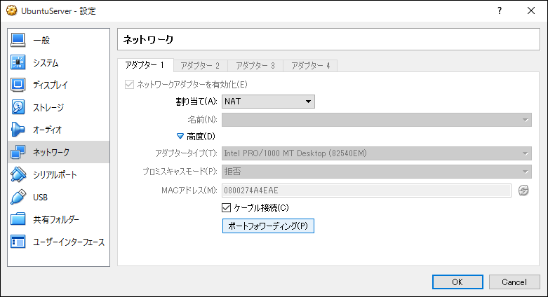 1. 仮想コンピュータのネットワーク設定にあるポートフォワーディングを設定する.