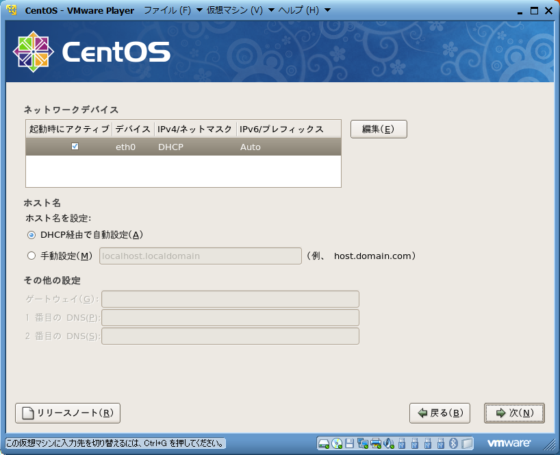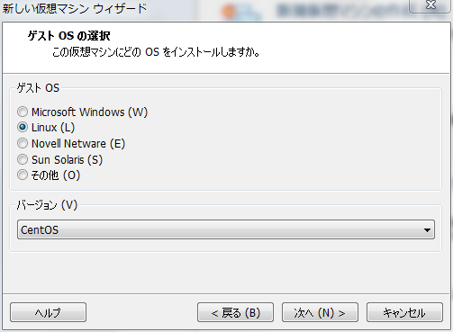 | ゲストOSは,Linuxを選択し,バージョンは,CentOSを選ぶこと. | |