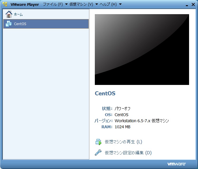 VMWare Playerのウィンドウの左上に"CentOS"が表示されたら実験1は終了である.