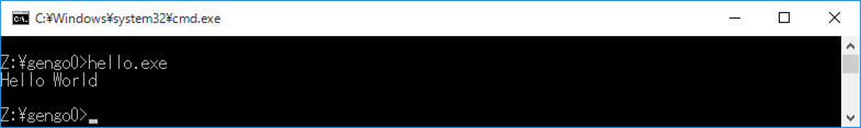 Hello Worldと画面に書き出されてコマンド入力待ちになれば成功です。