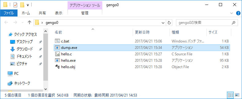 ファイルの中は幾つかの部分にわかれているのですがこの中身をみるための専用プログラムdumpbinが用意されています。コマンドラインから