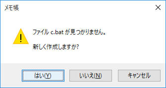 ※c.batの名前のファイルが無い場合は「新しく作りますか」と聞いてきますから。作ってください。