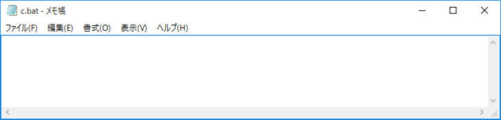 CUIは文字列を入力するだけなので、あらかじめ利用者の入力する文字列をファイルにしておいて、これを自動実行することができます。この目的で作られるファイルは拡張子がbatとします。バッチファイルと言います。メモ帳でc.batの中身を下記のテキストのようにしてください。ここはコピペしてかまいません。