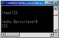 でerrorlevelを表示するように命令すると確かに123と値が表示されます。