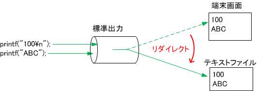 こともできる。 標準入出力先の切り替えをリダイレクトと言う。リダイレクトにより標準入出力先を
