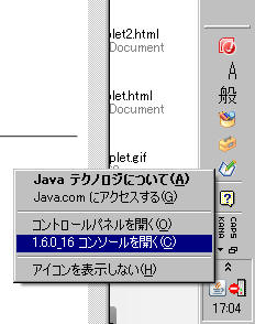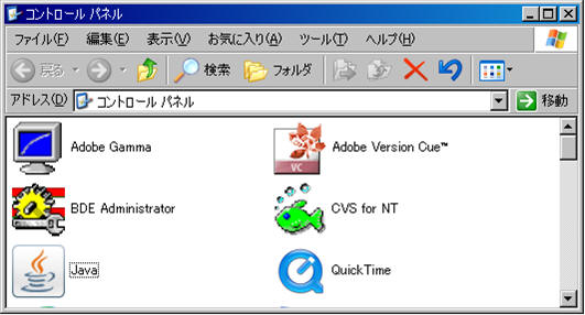 コンソールパネル(設定)を開き、javaのアイコンを起動