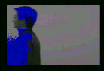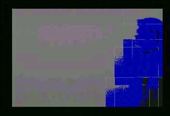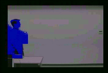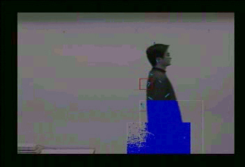 図1:前方移動障害物検出結果(図中の青色部分)