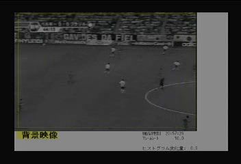 図2.2 シーン検出アプリケーション動作時ボール追跡のシステムを1シーン(7秒)を繰り返したソースにスキャンさせたところ、ボール検出率は78%、処理速度は0,4FPSであった。 次に、シーンチェンジ検出システムをこのソースの5シーン(4回切り替わる)をスキャンさせたところ、シーンチェンジ検出成功率は99%だった。観客席が画面の半分をしめる場合に検出に失敗したが、それ以外はほぼ100パーセントの検出率だった。この試合の芝の状況はすべて晴れで一定の明度を示し、10FPSで高速にシーンチェンジ検出を実現できた。 現在の問題点として、ボール追跡システムが0,4FPSと低速な点で、また今のところボールのヒストグラムを手動にして作成している。 今後はボール追跡システムの高速化、アルゴリズム改良によるボール追跡検出率の向上を目指す。